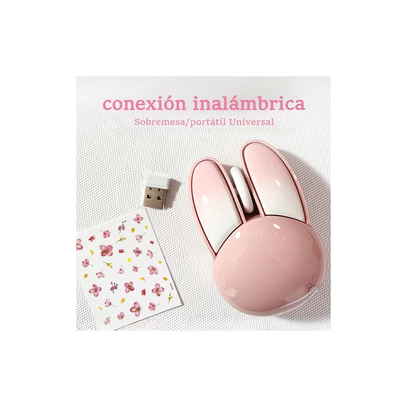 Mouse Inalámbrico Silencioso Conejo Adorable - Ergonomico, 5 Colores (Rosa/Azul), USB Plug & Play, Incluye Pilas + Stickers - Regalo para Oficina/Estudio