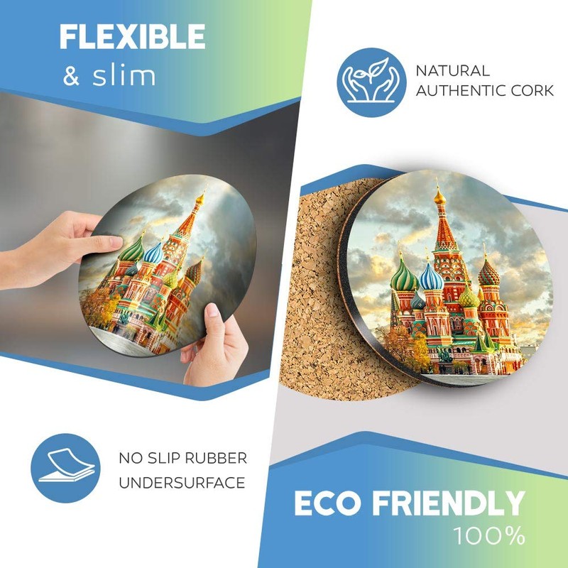 Mouse Mat & Coaster Set - Saint Basil's Cathedral Russian Square 20 cm & 9 cm for Computer & Laptop, Office, Non-slip Base #8791