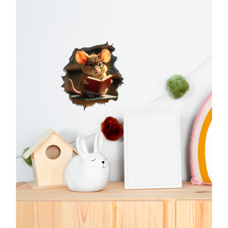 Mouse Reading Book Wall Murals Peel and Stick for Kids Room, Classroom Wall Decor - 3D Effect Wall Mural, Ideal Wall Stickers & Murals, Decorative Decal for Educational Spaces Design 24
