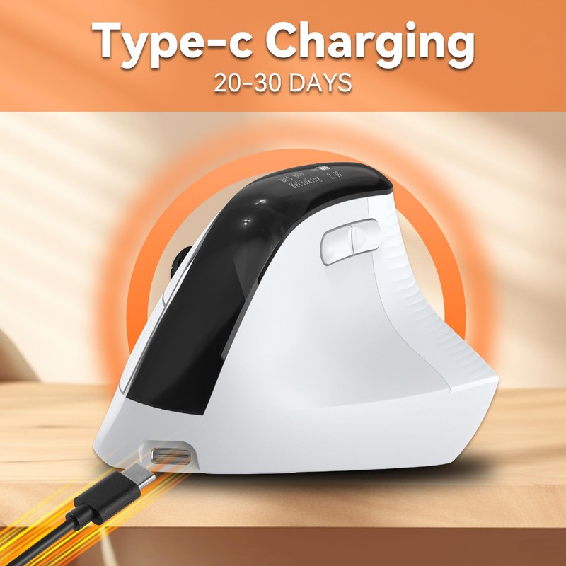 mouse vertical ergonómico inalámbrico con visualización LCD (blanco)