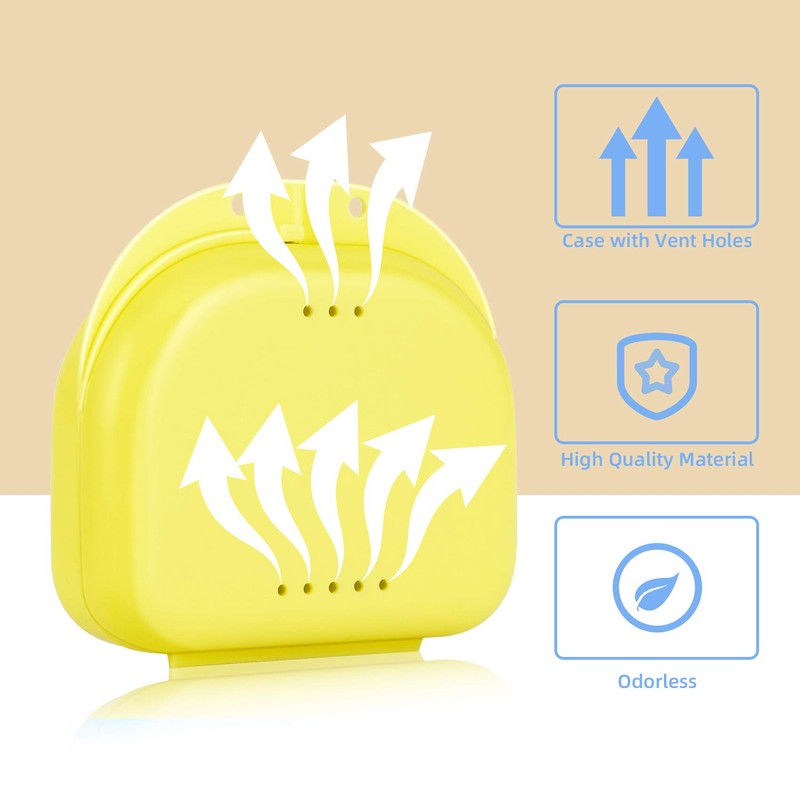 Mouth Guard Container Case Orthodontic Retainer Carry Case with Vent Holes, Denture Holder Aligner Case Small for Household|Office|Travel - Light Yellow