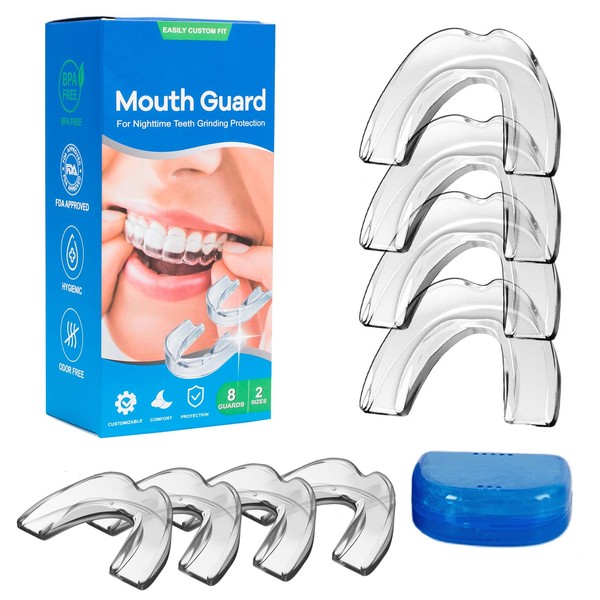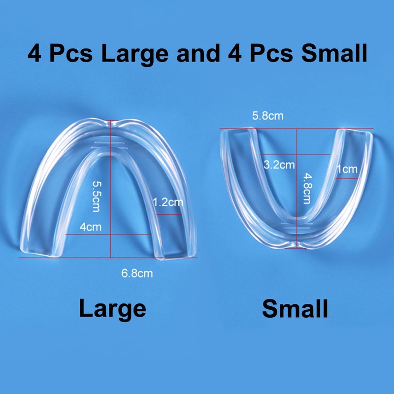 - [Mouth Guard] - This teeth guards include 4 large teeth guards and 4 small teeth guards, our mouth guards are perfect for teeth grinding, sports mouth guards and teeth whitening trays.