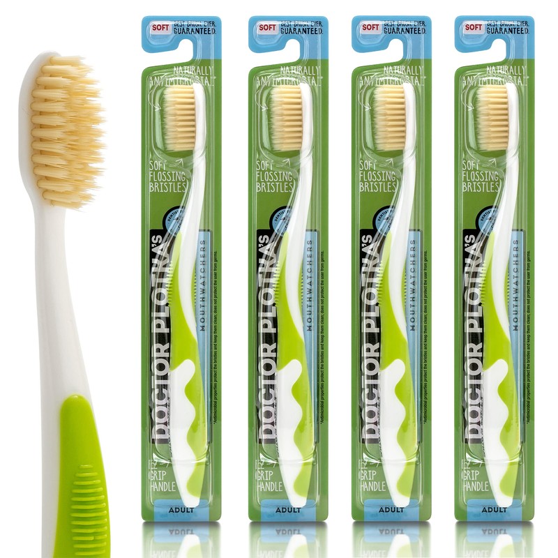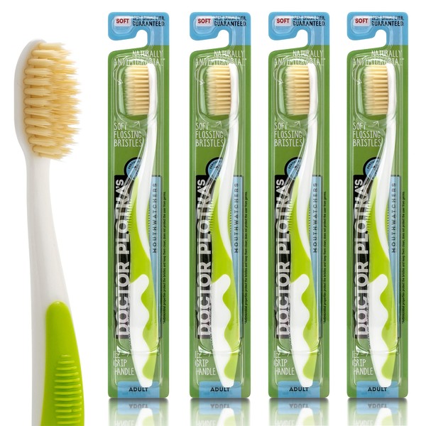 MOUTHWATCHERS Soft Flossing Toothbrushes, Value Pack of 4, Green, Manual Toothbrush for Adults, Ultra Clean, Good for Sensitive Teeth and Gums, by Dr. Plotka's