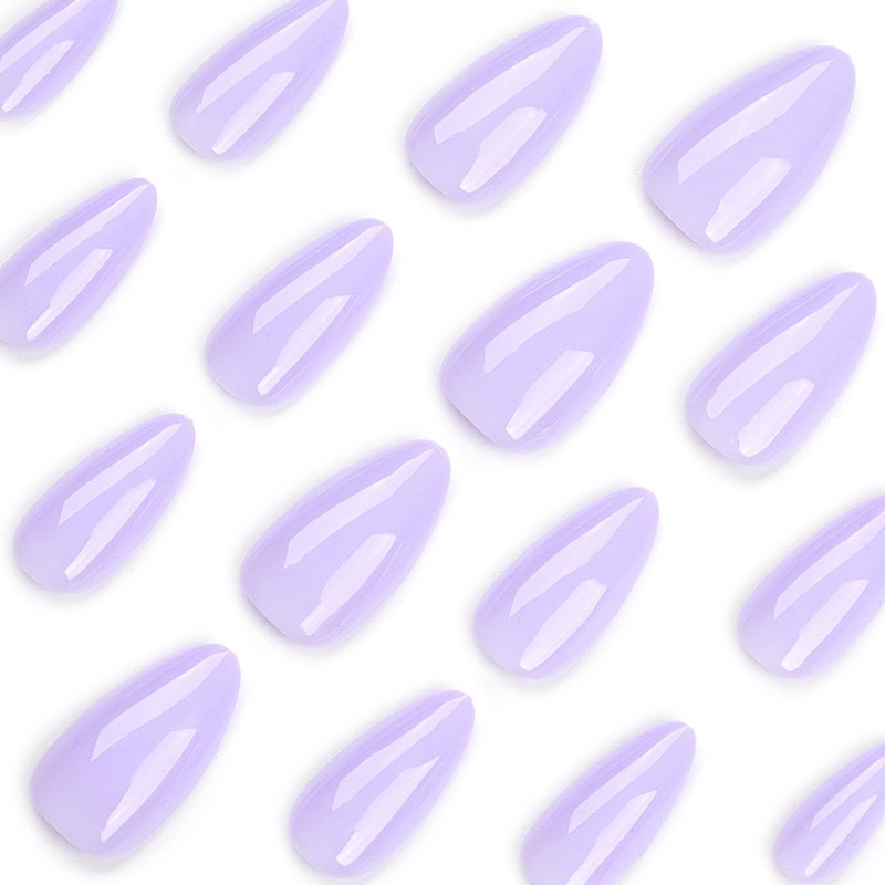 MouyouGlow Press on Nails Short, Almond Purple Lavender Lilac Plain Glossy Fake Nails with Nail Glue, Wisteria Mauve Purple Artificial Fingernails