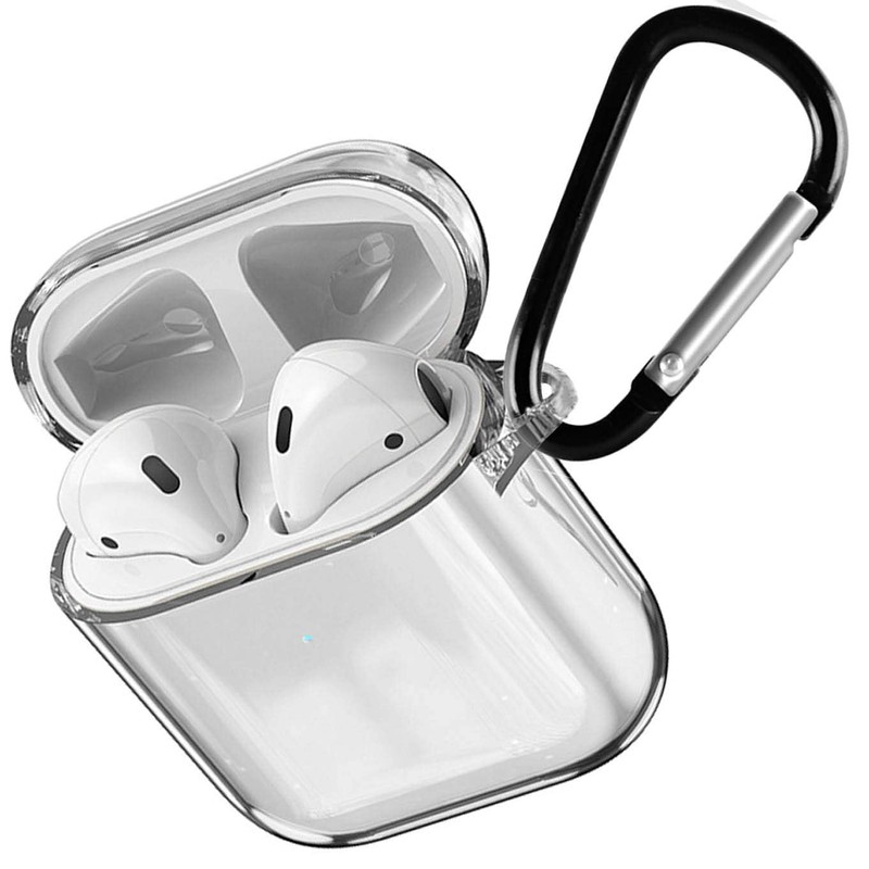 MouyouGlow Transparent Airpods 1/2 Case, Air Pods 1/2 (2019) Case TPC Protective Case with Carabiner, Shockproof LED Visible Wireless Charging Cover for AirPods 1 & 2 Charging Case - Crystal Clear
