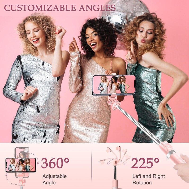 - Versatile and Portable Selfie Stick Tripod :Capture the perfect shot anytime and anywhere with our lightweight and portable selfie stick. Its compact design makes it easy to store and carry, ideal for live broadcasts, short video shooting, personal life records, family gatherings, and outdoor adventures.