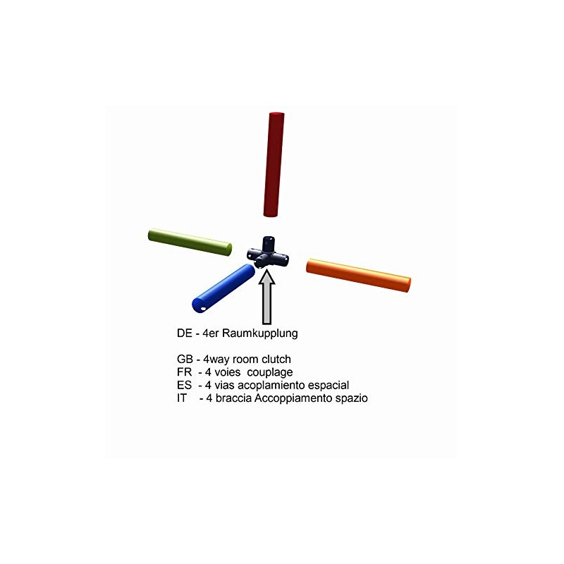 - Connect pipes on all five sides with the 4-arm Move and stic space coupling. With additional 4-piece couplings, the creative construction of platforms and railings for example has no limits.