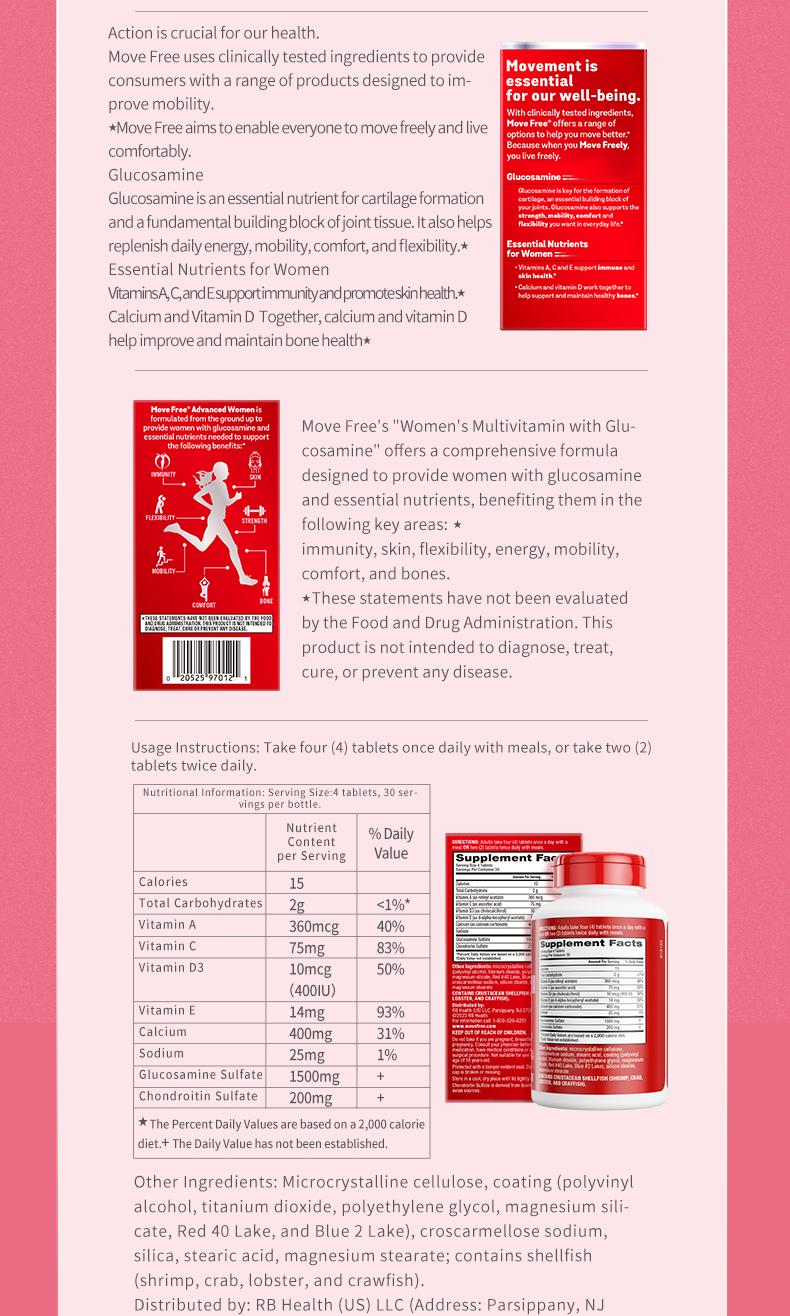 Move Free joint health 7-in-1 Glucosamine Chondroitin Plus Calcium Complex Vitamin Supplements for Women Multi-Vitamins + Multi-Glucosamine 120 Pills - Specification: Women's Glucosamine