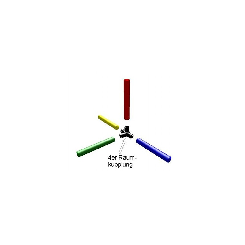 With the 4-arm Move ands tic space coupling, you can connect pipes on all four sides. This much used 4 coupling is needed for example to build the corners of a tower.