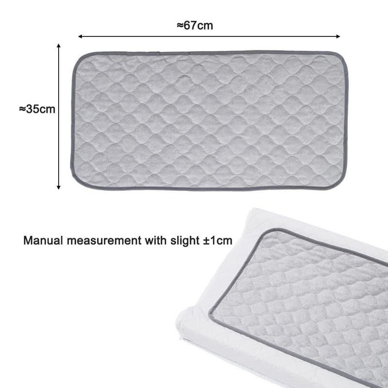 MOVEBO Thicker Waterproof Changing Pad Liners Bamboo Cotton Changing Table Cover Liners 2 Count 14" X 27"(Square gray) Material: Bamboo cotton40%+polyester fiber30%+TPU30% Size: Approximately 67 * 35cm (27 * 14 inches) The package includes: 1 * 2 count Waterproof Changing Pad Liners