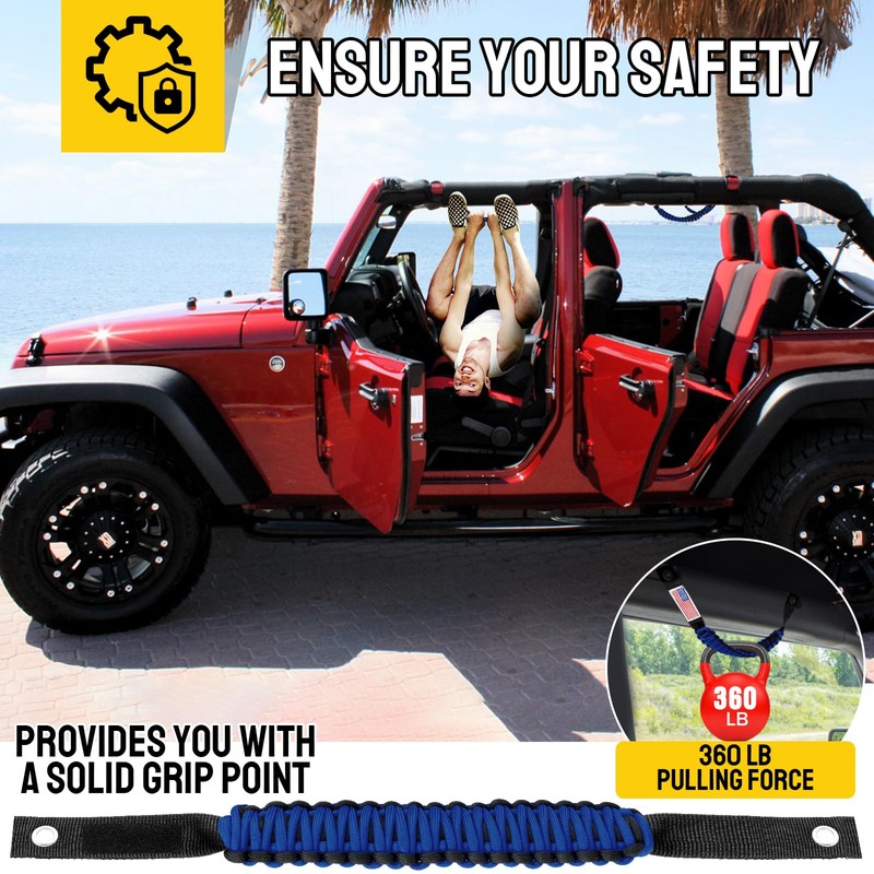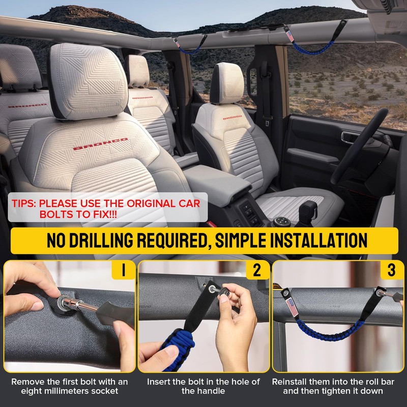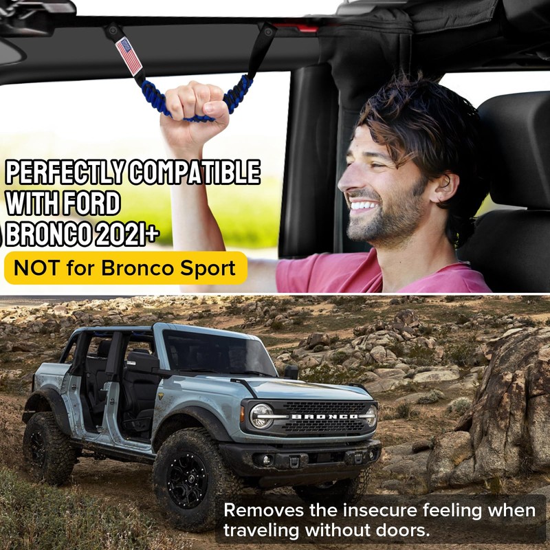 moveland 4 Pack Roll Bar Grab Handles with Flag, Premium Paracord Grab Handles for Ford Bronco 2021 2022 2023 2/4 Door, No Drilling Required Interior Accessories (Blue)