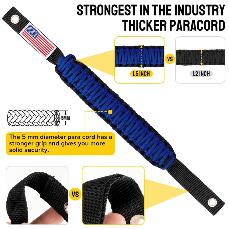 - Strongest in the Industry, Thicker Paracord: Woven double cobra style knot handles for even greater strength. The 5 mm diameter para cord has a stronger grip and gives you more solid security. You will NOT find better made handles anywhere