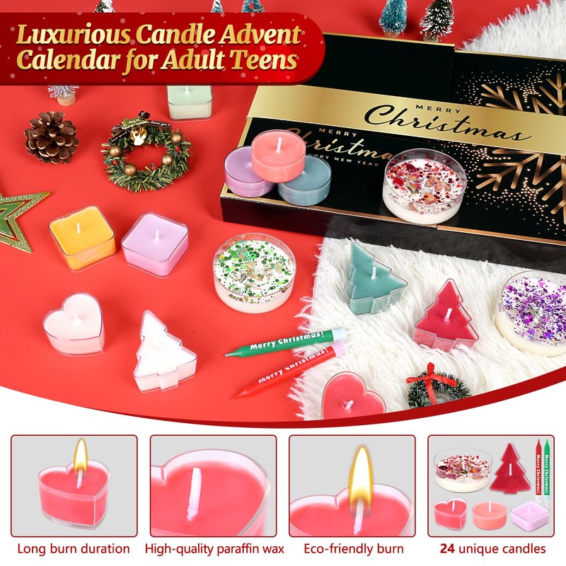 - 【2024 SCENTED CANDLE ADVENT CALENDAR】Elevate your holiday season with our 2024 Scented Candle Advent Calendar! Unwrap a new fragrance every day and fill your home with warmth, relaxation, and festive charm. Perfect for candle lovers and anyone who enjoys a cozy atmosphere, this countdown calendar makes every day of December memorable.
