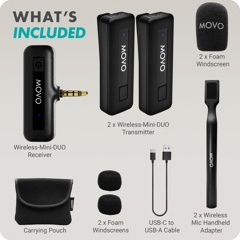 Movo Wireless-Mini-DUO+WMX-HMx2 Microphone System with 1-Year Warranty