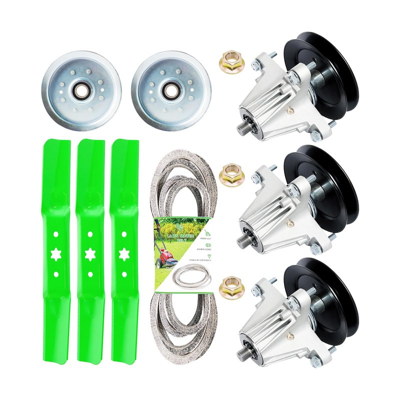 Mower Deck Rebuild Kit Fits for 50" Deck, Compatible with M TD Cub Ca det Troy B ilt Colum bia XT1 GT50 TB2350 CYT5023SE Includes 3 Spindle 918-06981, 3 Blade 942-05052A, 1 B elt 754-04077 and 2 Idler