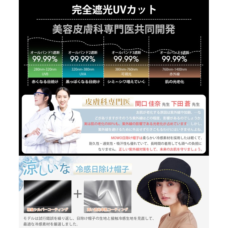 MOWO [Jointly Developed by Beauty Dermatologists] UV Protection Hat, Women's, Fully Light Shielding Certified, Mesh Breathable, Sunshade, Elegant Hat, Large Size, Sun Protection, UV Protection, Small