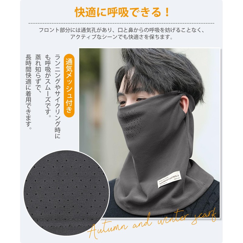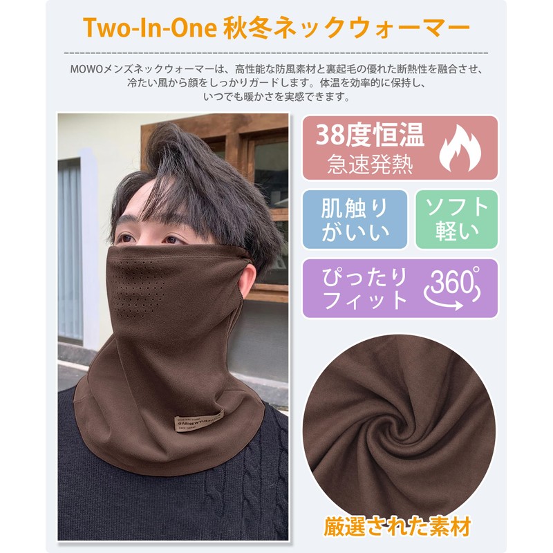 MOWO Neck Warmer, Men's Face Cover, Winter, Breathable Mesh, 360 Degrees Temperature Generation, 2-Way Use, Neck Guard, Ear Hanging, Does Not Suffer from Breathing, Small Face Effect, Soft Touch,