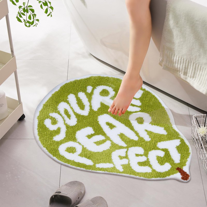 • 🍐 Versatile Decor Piece - Beyond the bathroom, this rug doubles as a cute room decor or area rug. The delightful "Pearfect" print makes it a charming addition to any corner of your home.