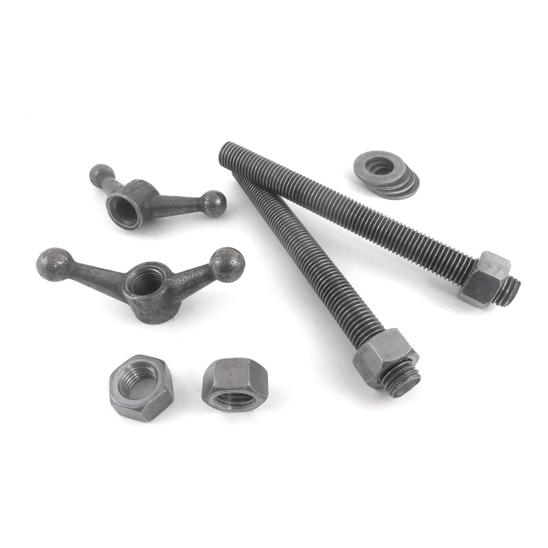 - This kit contains 2 each 8 inch 3/4-10 threaded rods (NOT Acme threads), 2 each 4-1/2 inch cast two-prong knobs and 4 each 3/4 inch nuts and washers. For a more traditional look and feel, all metal parts are made from unfinished steel.