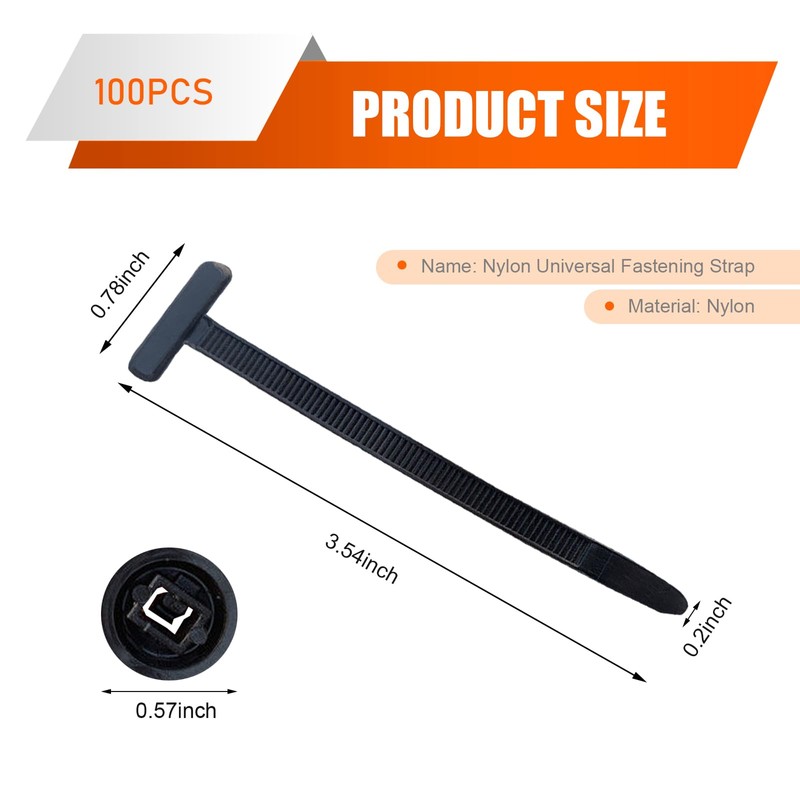 - Universal Automotive Compatibility: The cable ties are 3.54 inches long with a clamp diameter of 0.57 inches, suitable for over 90% of modern vehicles. These fasteners can effectively secure body panels, trunk liners, engine covers, and underbody panels.