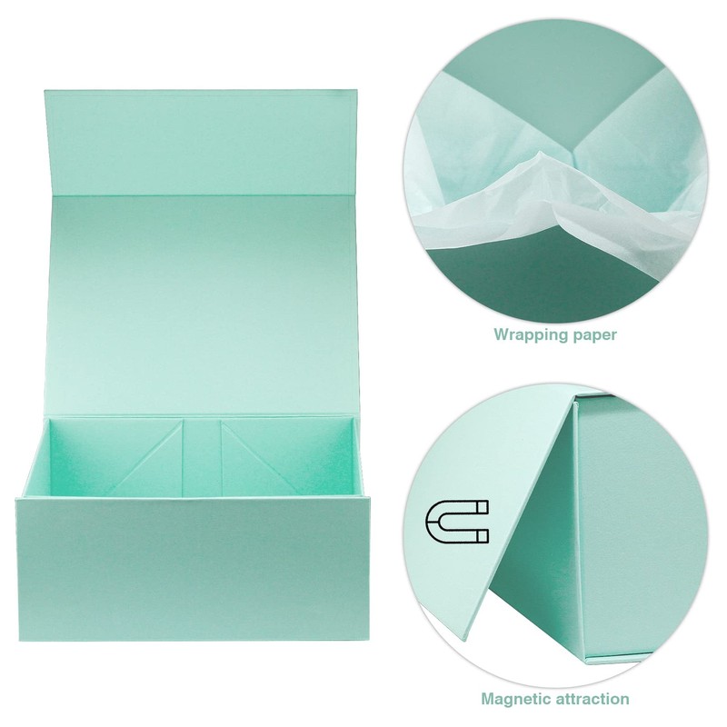 - 💝Durable Material Quality: The collapsible gift boxs is made of high quality cardboard with a glossy finish and neat flap, sturdy, reliable and durable.(Comes with a 72 inch Champagne ribbon)