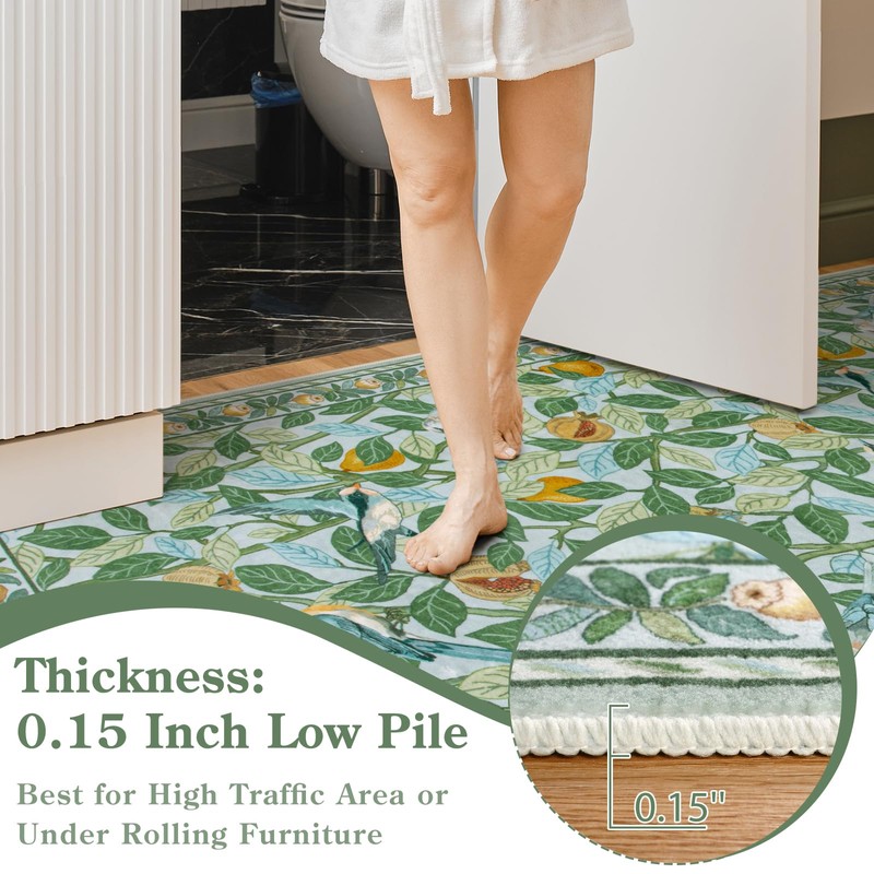 Ultra Thin Rug: The low pile is as low as 0.15 inches, so food crumbs, hair, fur and dirt won't get trapped inside. These rugs are perfect for any high-traffic area. No more worrying about unforeseen messes from kids and pets