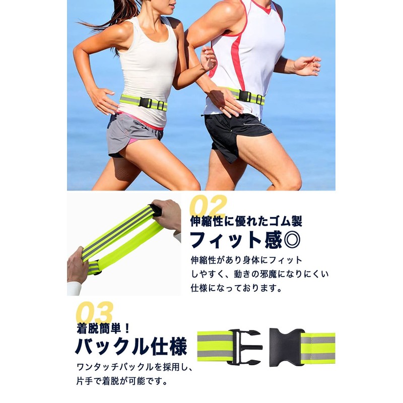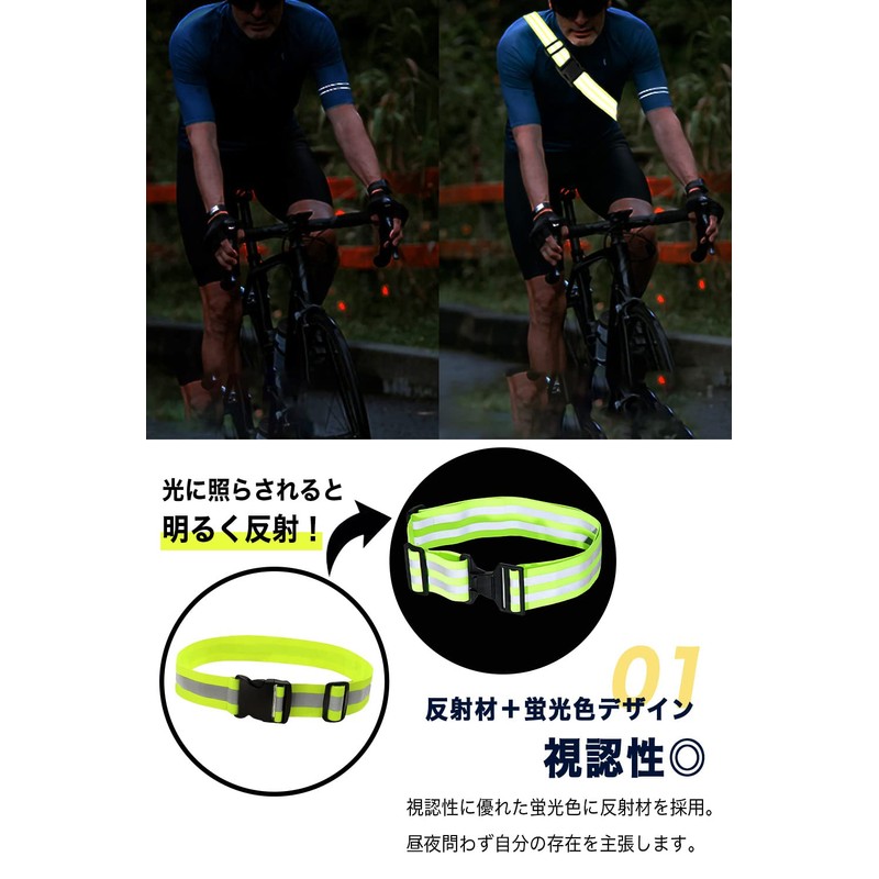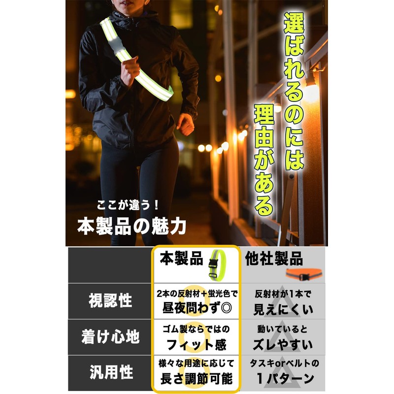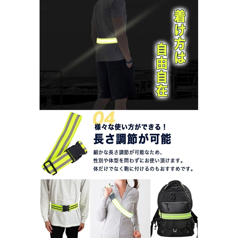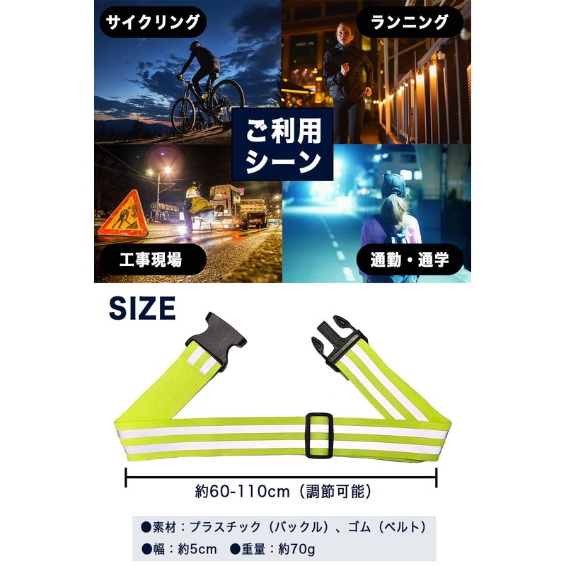 • 【Safe even in the dark! Reflective sash that can be used as a safety measure or security measure for running in the evening or at night, jogging, walking, bicycles, and motorcycles. Reflects well on LED lights, and when the fluorescent colors are illuminated by light, they can be seen from a distance, making a statement of their presence. It is also a safety item that will protect you from work, work, crime prevention, and even during disasters