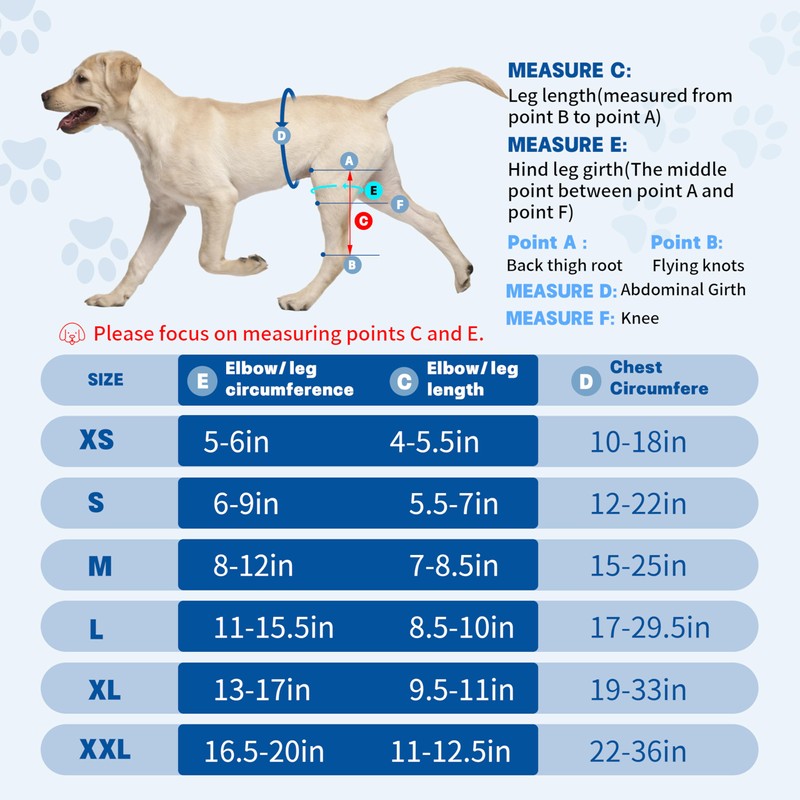 • BE PATIENT WITH YOUR DOG: this dog acl knee brace is easy to install, not easy to fall off, and difficult to untie even if your dog bites it with his teeth. Before buying, the most important thing is to carefully measure the size of the leg joint that your dog needs to support, and wait for your dog to adapt after receiving the knee brace (most dogs will adapt to the knee brace within 1-5 days). If you are not sure what size knee brace to buy, you can contact us or buy a customized knee brace.