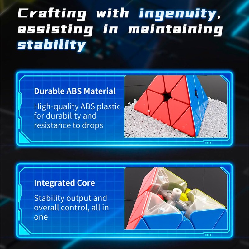 - ** NEW V2 Pyraminx CUBE, STABILITY UP: Pieces form a plug-in locking groove,which can be disassembled as one piece Strengthensthe assembly structure, making it less prone to pieces falig off.