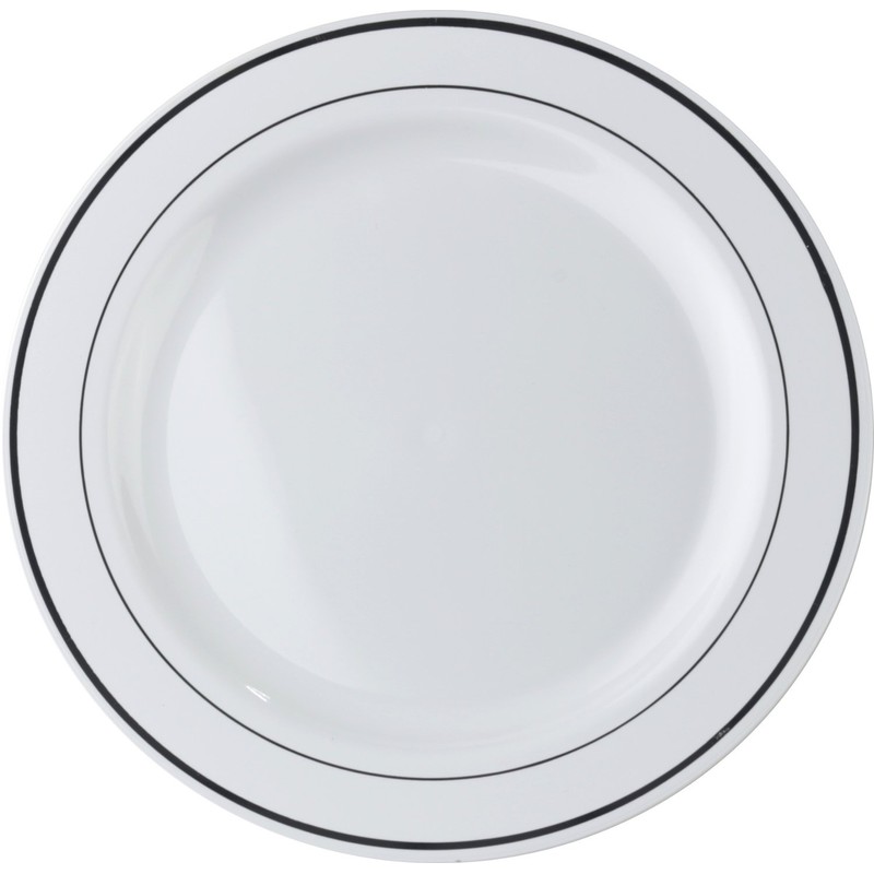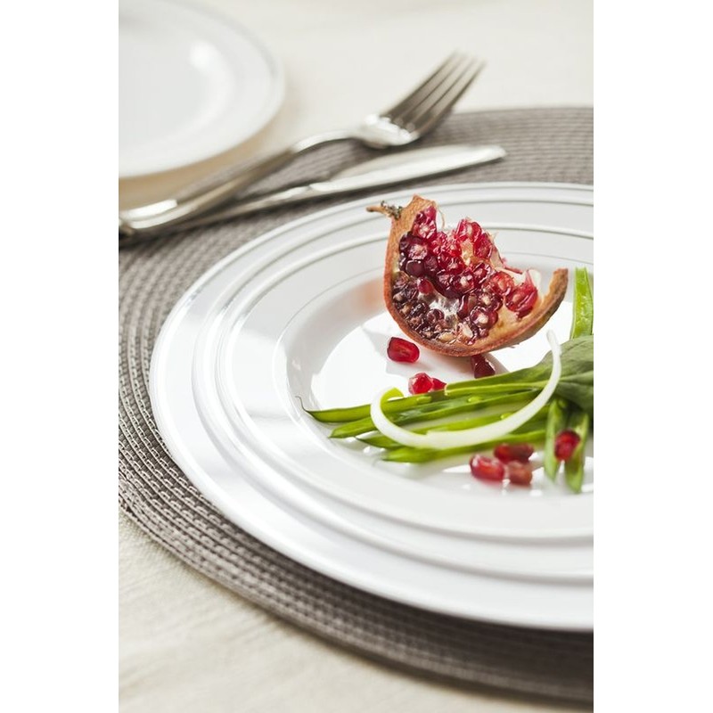 MOZAIK 20 White Silver Rim Plastic Plates 19cm