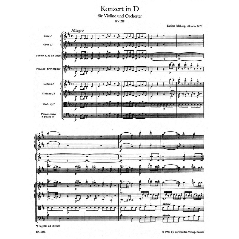 Mozart: Violin Concerto No. 4 in D Major, K. 218 (Full Score)
