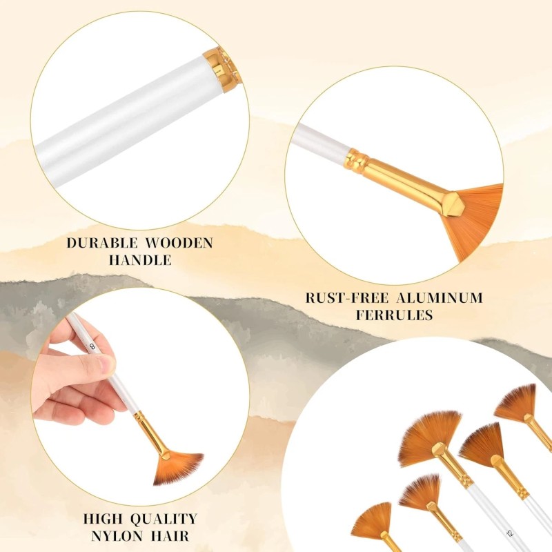 - 【5-Piece Fan Brush Set for Painting】This fan paint brush set comes in 5 different sizes, including sizes 2#, 6#, 8#, 10#, and 12#. It's a fantastic collection of watercolor paint brushes in varying sizes.