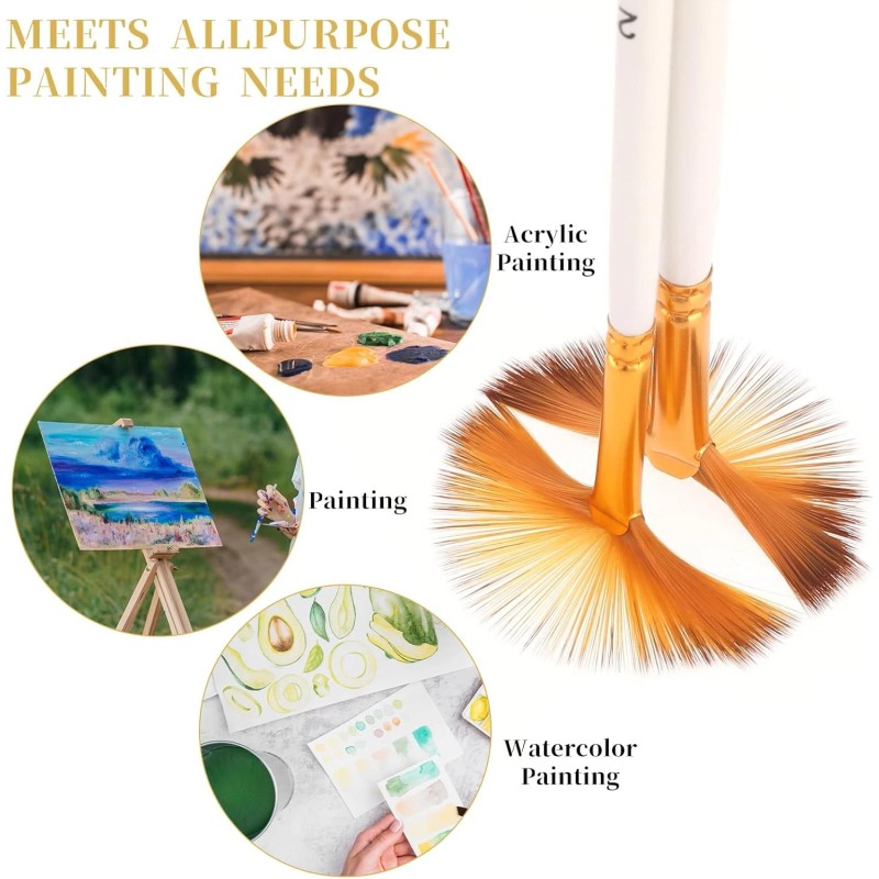 - 【Versatile Paint Brushes】These fan brushes are suitable for almost any type of paint, including watercolor, oil, gouache, acrylic painting, body, nail, face painting, miniature, model, craft art painting, and more. You can use them indoors or outdoors.