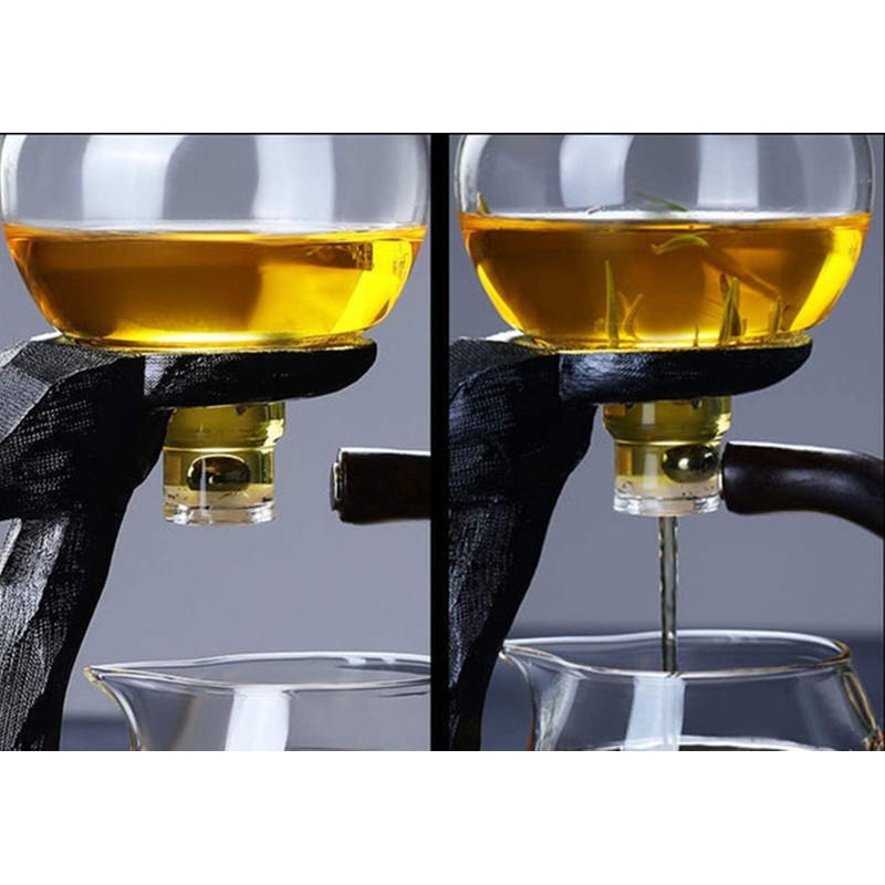 Mozeo Heat-resistant Kungfu Glass Tea Set with Heater Attract Water Diversion Rotating Cover Bowl Lazy Semi-Automatic Deer Glass Teapot (Black deer single)