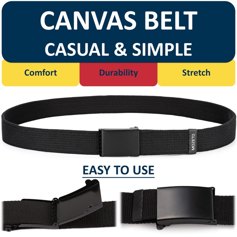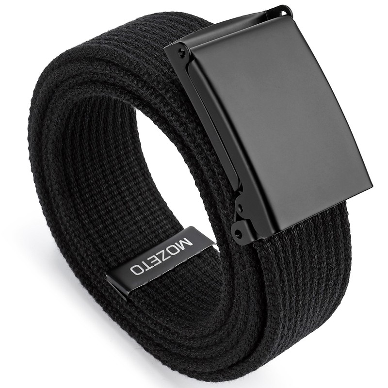 Mozeto Belt, Fabric Belt, 3.8 cm Wide Unisex Work Belt with Flip Top Black Buckle, Plain - Black #A