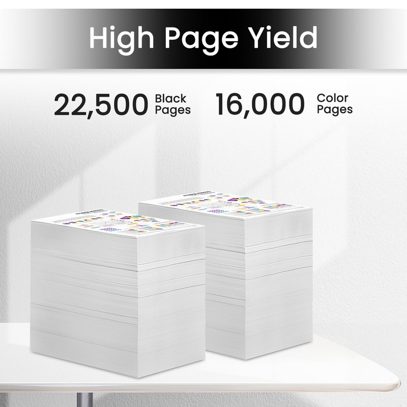 - High Page Yield: Up to 22,500 pages per MPC3501 black toner cartridge, up to 16,000 pages per MPC3501 color toner cartridge at 5% coverage of A4 paper
