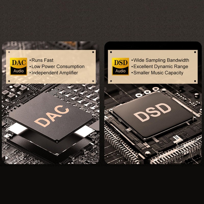- High Resolution Lossless Sound: The digital sound player features a 2.4 inch HD display screen that provides detailed high resolution sound without distortion. It supports popular file formats including FLAC, APE, DFF, MP3, WAV, WMA, M4A, MP2, AAC, ALAC, OGG, AIFF, and Native DSD (up to 128-bit/5.6 MHz).