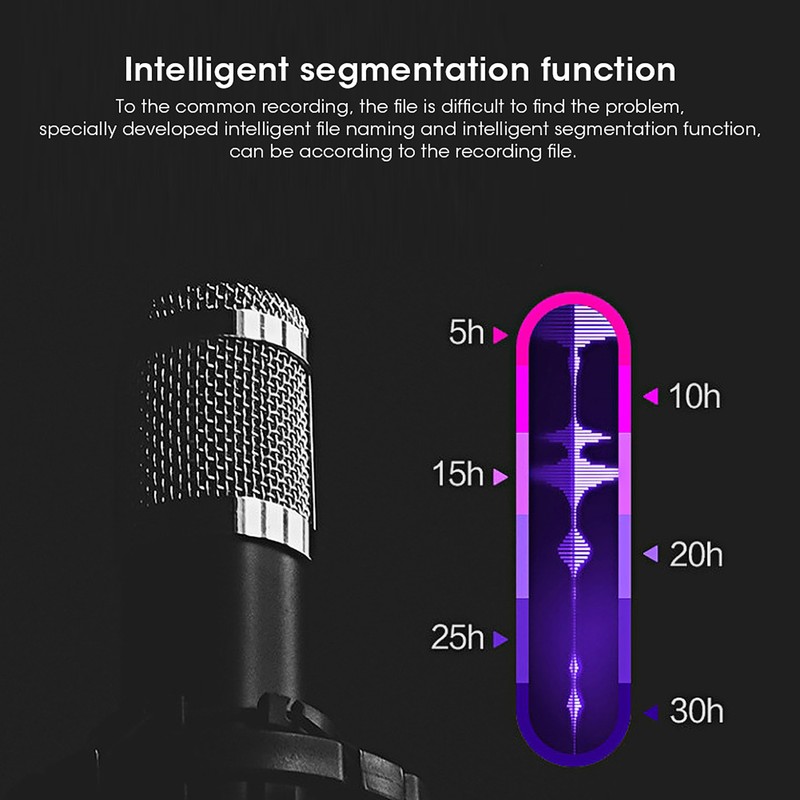 1、With magnet adsorption, high concealment, IPX6 waterproof. 2、One‑key recording, keyless design, multi‑function operation with wire control, delete function, play LED indicator. 3、ADPCM recording 192Kbit, optional voice control recording 50DB, automatic recording division, circulate to cover recording. 4、Continuous 500 hours of recording, 365 days standby, 8GB capacity (90 hours of recording storage). 5、Support MP3, WMA, WAV playback, support fast advance and retreat playback, with a timestamp, recording file is named after the time.