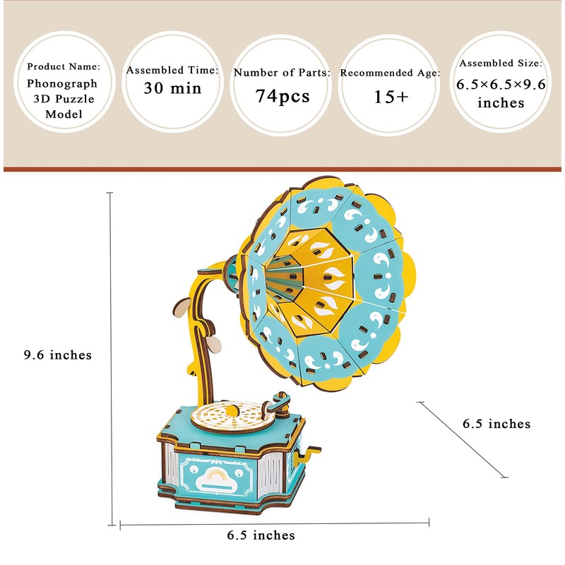 - Product Name: Phonograph 3D Wooden Puzzle Model