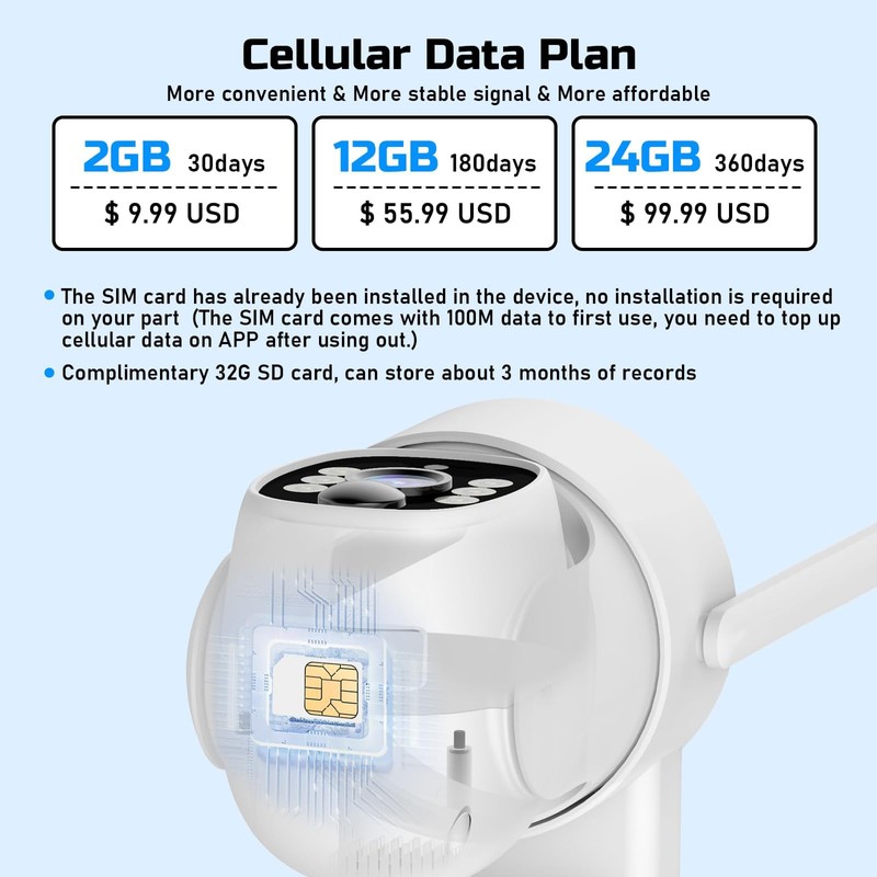 • 【Easy installation, diverse App functions】 No Wifi and wiring required: no need to drill walls, no need to damage decoration, can be used in places without Wifi; 4G full network access (built-in 4G data card, users do not need to purchase data cards separately, just recharge in the APP to use, there are 3 recharge options, detailed explanation in the manual)