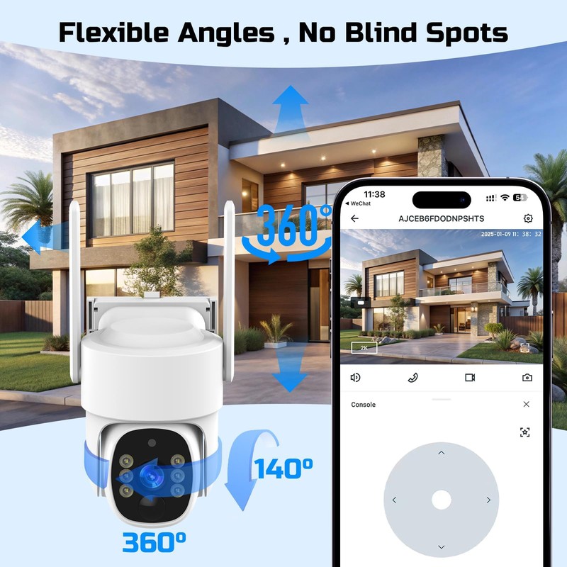 • 【2K Full Color Image and 90 degrees up and down, 360 degrees left and right】The security camera has up to 3 million pixels, which is 1.5 times clearer than traditional 1080p cameras. Built-in 2 infrared lights and 2 white lights provide you with clearer color night vision. The outdoor home security camera has 355° pan, 120° tilt and 4x digital zoom (without automatic tracking), which can monitor any corner in 360° to ensure the safety of vehicles, yards and other properties.