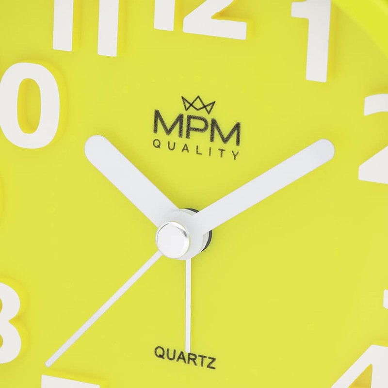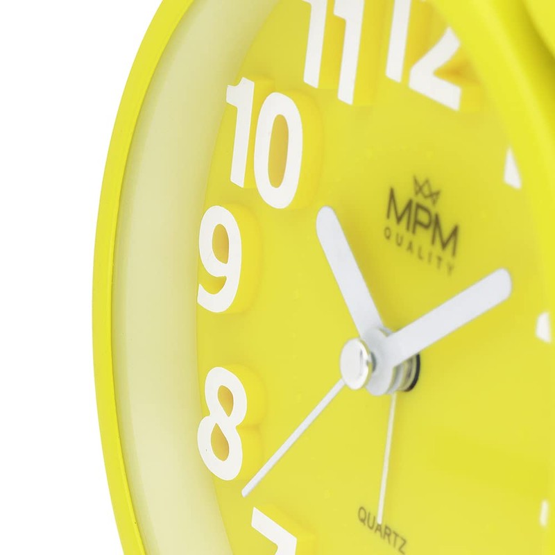 MPM Quality Design Metal Alarm Clock in Trendy Colours, Yellow, 3D Dial, Quartz Movement Sweep, LED Light Function, Analogue, Classic Ringing, Wakes Even the Biggest Sleepers, 155 x 110 x 55 mm