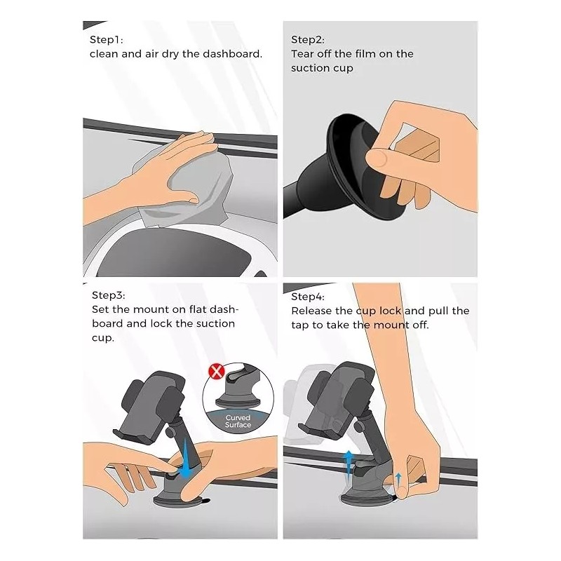 Gen-2 Dashboard Car Phone Holder, Windshield Car Phone Mount, with Strong Sticky Gel Pad for Iphone 11 Pro/ Max/ X/XS/XR/8Plus/8/7Plus/7/6Plus, Galaxy S10/9/8/7, Note9, Google, Moto, Black