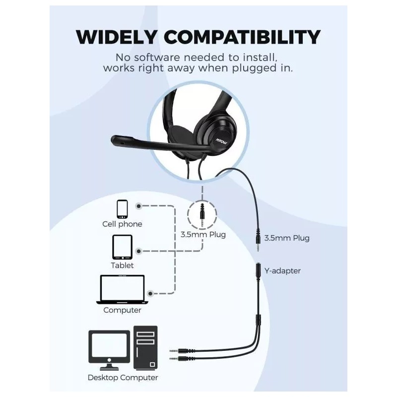 MPOW Headset Computer Wired Headphone Sound In-Line Control BH531A