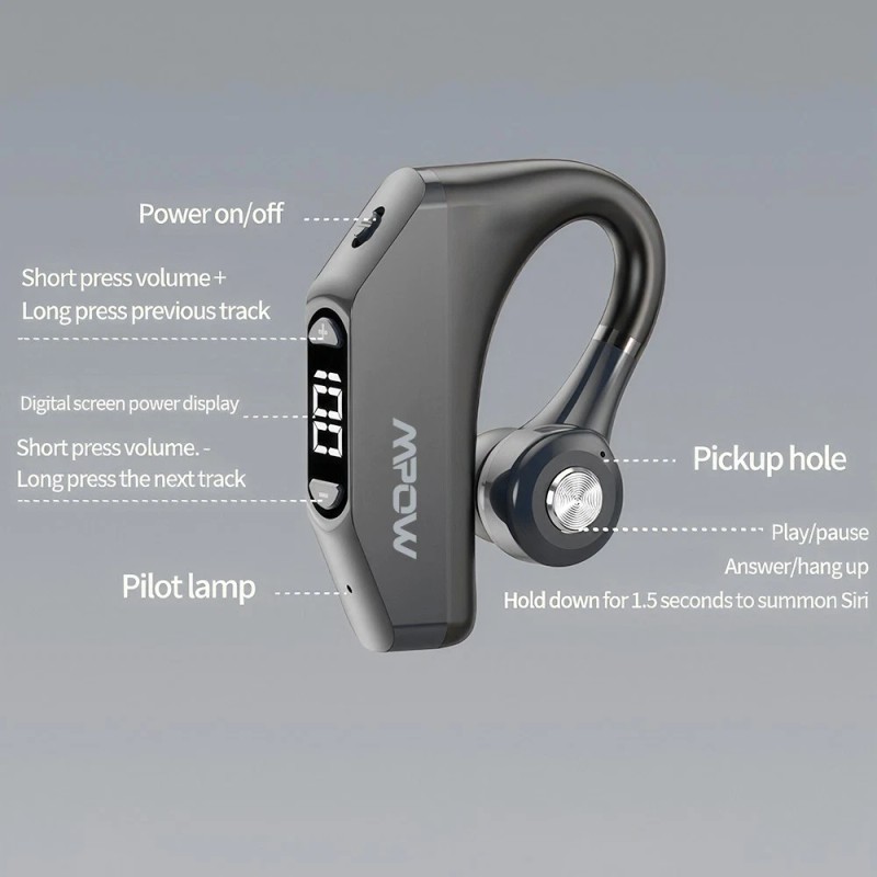1: Button operation, digital display of power, Bluetooth 5.3 headset for both ears,
