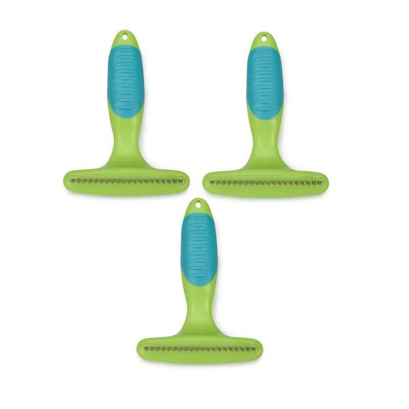 MPP Dog and Cat Grooming Swivel Pin Undercoat Rake 20 Long Chrome Pins Non Slip Grip (1 Rake), Green