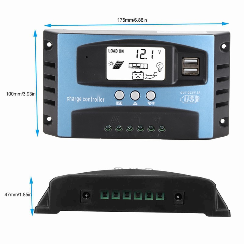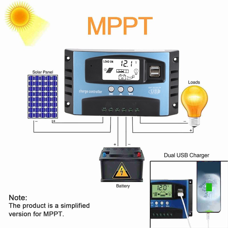 MPPT 100A Solar Charge Controller Dual USB LCD Display 12V 24V