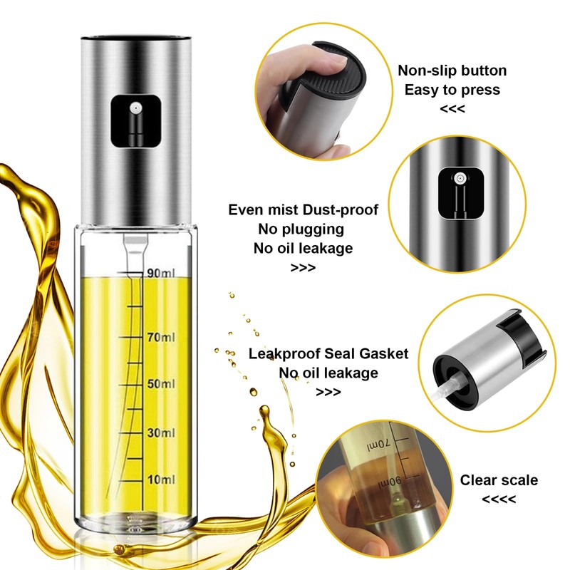 - 【Sicher und langlebig】Die sprühflasche für speiseöl besteht aus hochwertigem edelstahl 304 und einer glasflasche in lebensmittelqualität. Auch wenn es mit heißem Öl gefüllt ist, werden keine schädlichen substanzen freigesetzt. Das spülmaschinenfeste design erleichtert die reinigung