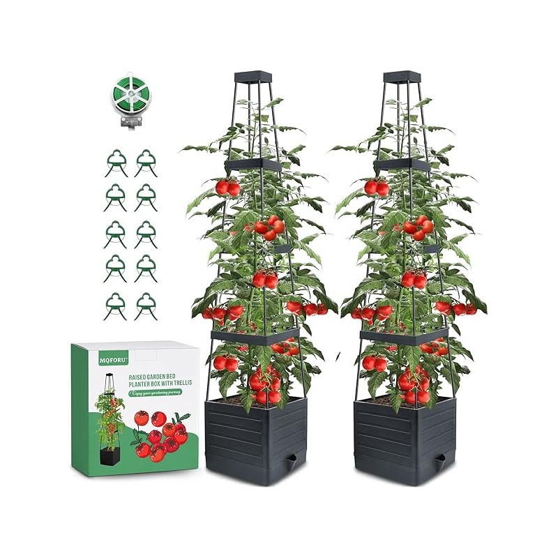 MQFORU 2 Packs Raised Garden Bed Tomato Planter with Trellis, 57" Tomato Cages for Climbing Vegetables Plant, Self Watering Planters Box for Garden Pots for Patio Greenhouse Indoor Outdoor(2PCS)