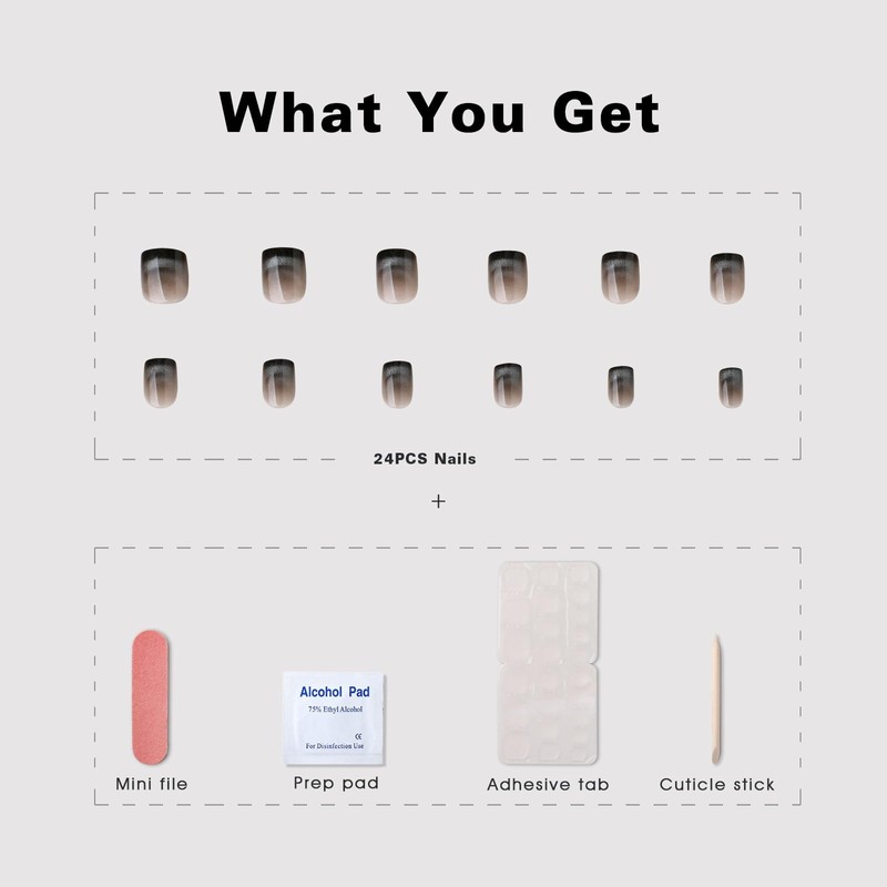 • Everything You Need Included:Get the perfect fit and application with our generous kit! It includes 24 nails (for the ideal match), adhesive tabs, cuticle stick, nail file and prep pad. Everything required for a flawless, long-lasting application is right in the box.